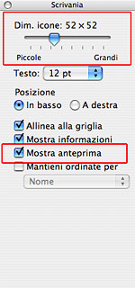 ...e scegliere poi "Mostra Anteprima Icona" (o "Mostra