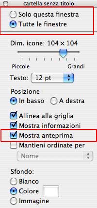 anteprima" nei sistemi precedenti Snow Leopard) per quella specifica cartella (finestra)