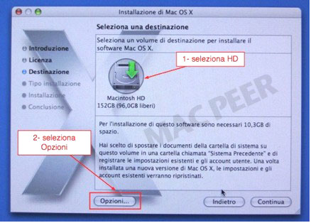 L'opzione Archivia e Installa è disponibile per le versioni del sistema precedenti a Snow Leopard. Per quest'ultimo rimandiamo alla nota esplicativa in fondo a questa pagina**