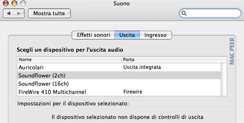 Infine impostiamo il monitor di Soundflowerbed sull'uscita reale desiderata, come nella figura seguente: