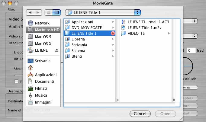 MovieGate scegliete "create Disk image for burning" si