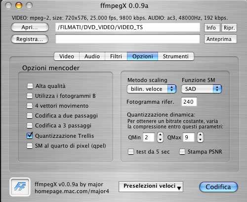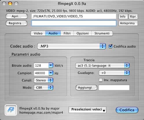 anche farlo all'inizio, al primo passo, una volta aperto ffmpegX e dopo