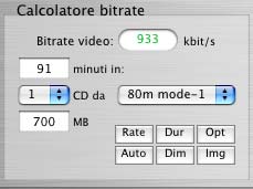 calcolare il BitRate e click su pulsantino "Opt" per