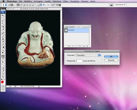Nella palette Tracciati assegnare un nome al tracciato (si possono creare più tracciati per la stessa immagine), quindi registrarlo come Tracciato di ritaglio (se si sono creati più tracciati, scegliere quello più idoneo al proprio progetto). Guarda il VIDEO